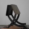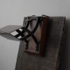 経年ですっかりトロリとした質感の木製ベース、ロートアイアンのアームに真鍮板がリベット留めされ、それぞれ古色を纏いとてもよい雰囲気。