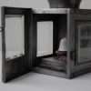 スチール製で武骨な外装も三方の面取りガラスで印象はノーブル。
