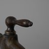 ディスプレイ用途でのご使用をおすすめしますが、実際に水を流すことは可能ではあります。レバーを左右どちらかに回すと止まる仕組みですが、中心の止水弁の働きをする箇所が経年により磨耗しており、現状ではレバー付け根部分から若干の水漏れが生じてしまいます。