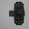 ツマミを回すとスライドするバーで施錠する仕組み。