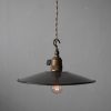 フランスのエナメル(琺瑯)製のランプシェードにスイッチ付きの真鍮ソケットをセッティング。