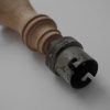 ハンドルはフレンチオークの古材をろくろ挽きして製作。虫喰い痕があったりと古材ならでは表情を愉しめます。
