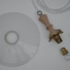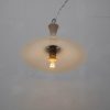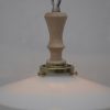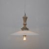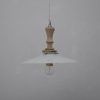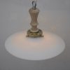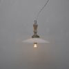 ミルクガラスのシェードは日本の古いものを、真鍮製ソケットはフランスの古いものをそれぞれセットしています。ハンドルパーツ上部のリングを利用してワイヤーなどで空間に吊り下げることで、中空に浮かぶオブジェのような佇まいとなります。