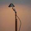 ベースになっている昇降式の土台は、20世紀中頃にフランスの服飾店で用いられたハンガースタンドのパーツです。照明部には角度調節が可能なソケットパーツを接続しています。左右180度の首振りができます。