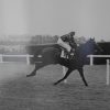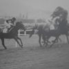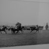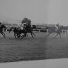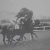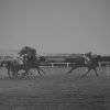 レースを疾駆するサラブレッドを撮影した、フランスのモノクローム写真。