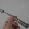 継ぎ目から先端部は鉄製で、一部にメッキを施していた形跡も見られます。持ち手はピューターでできています。