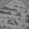 フランス、19世紀初頭のCreil (クレイユ窯) のグリザイユ皿。中央には判じ絵(なぞなぞ)が描かれています。